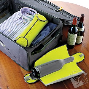 Traveling with wine? Bring protection. This uniquely designed wine protector features two layers of shock-absorbent, insulating neoprene. Protector stands between your wine and the hazards of travel. Velcro® closures assure a snug trip for most standard-size wine bottles and some spirit bottles. Bottles easily slide into place within wine bottle shaped neoprene lining and is sealed closed with Velcro®. Once in place, the neoprene wrap can be wrapped around the lining and closed with Velcro®. Fits easily in a suitcase. Holds one bottle of wine. Imported. Click To Full Review.